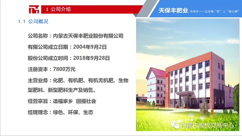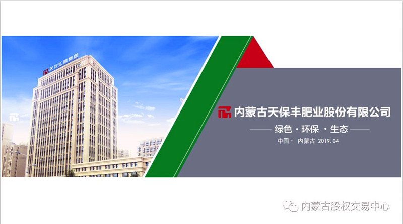 2019年4月24日下午15点,由内蒙古股权交易中心发起的“蒙股大盈”路演吧第一百五十期线上路演活动成功举办。我集团旗下内蒙古天保丰肥业股份有限公司参加了此次路演。