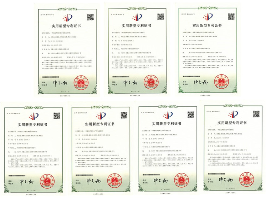内蒙古天保丰肥业股份有限公司多年来以市场为导向,围绕节能降耗、提质增效,坚持不懈的致力于颗粒钾肥的研发和生产。目前,通过对生产设备的不断升级改进,天保丰颗粒钾肥7项生产关键技术已获得国家知识产权局颁发的实用新型专利。