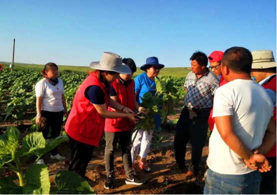 7月23日-27日,天宇农化服务团队随孙教授一行前往凉城、前旗、兴和、后旗、中旗、武川等旗县,为金菊、南瓜、洋葱、葵花、马铃薯、红萝卜等作物解决病虫害以及讲解植保技术。