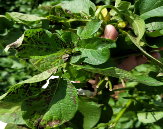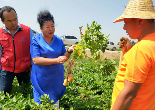 图四 后旗马铃薯基地发现6月病,孙教授为其解答危害