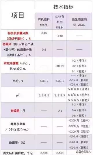 ①有机质含量:有机肥有机质含量要求(≥45%)生物有机肥有机质要求(≥40%)其都对有机质的含量做了明确的规定,而微生物菌剂则没有明确规定。