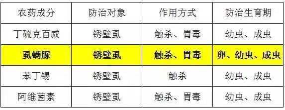 从上表可以看出,防治柑橘上锈壁虱的几种药剂中,基本都是用触杀和胃毒的作用方式,可以杀死幼虫、成虫,但能杀死虫卵的只有虱螨脲,可以在预防这个领域里起到关键作用,持效更长,这就是虱螨脲的优势。