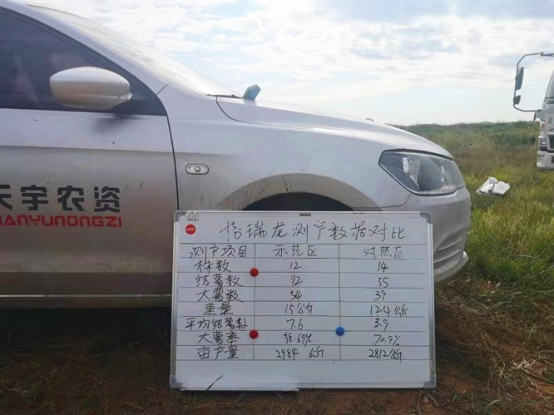 王飞(武川区域)、井平(中旗区域)两名业务员全程跟踪指导肥料的用法用量,并按期记录株高、结薯数、茎粗等各项数据。当天对格瑞龙马铃薯全程营养方案示范田与对照田进行了实际测产,采用随机选取一个种植户,在格瑞龙马铃薯全程营养方案示范田和对照田内投掷小铲来选取测产样点各2个,每个测产样点为1.5米,随后由参会种植户及会务组成员挖取马铃薯进行测产,最后公布测产结果,在亩成本相同的情况下平均每亩增产了200-300公斤,种植户对这一测产结果表示认可,对我公司的产品及提供的农化服务非常满意,后续我们还会继续跟踪格瑞龙马铃薯全程营养方案示范田最终的产量,敬请期待。