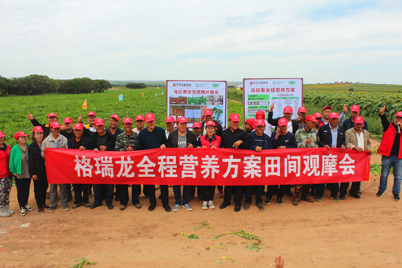 8月22日、23日在内蒙古武川县六号梁村、察哈尔右翼中旗义发泉由农化服务部牵头召开了格瑞龙马铃薯全程营养方案观摩会,我公司区域内大型种植户参加了本次活动。从春季整地、播种一直到秋季收获,农化服务全程跟踪了马铃薯全营养方案土地的种植情况,用实实在在的种植成果向广大马铃薯种植户展示了我公司格瑞龙产品及配肥方案的优势。
