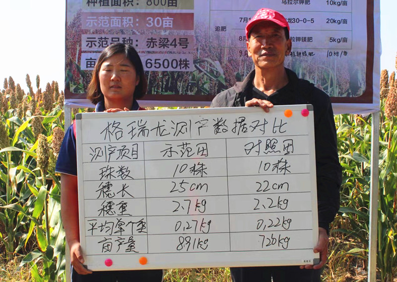 2019年9月29日,我集团农化服务部与市场营销中心牵头在乌兰察布市凉城县榆树坡召开格瑞龙高粱全程营养方案观摩会,周边种植大户与经销商共同参加了此次活动,实地观摩了今年我公司“格瑞龙”高粱全营养方案的结果。