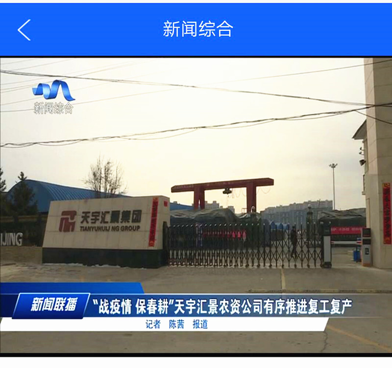日前,国家发改委等16部门联合印发通知,要求各地在新冠肺炎疫情防控下做好2020年春耕化肥生产供应工作,推动化肥及其原辅料生产企业复工复产,相关企业要优先保障化肥生产所需煤炭、天然气等原料供应,努力增加春耕前化肥产量。2月18日乌兰察布广播电视台对我公司复工复产情况进行了专访报道。