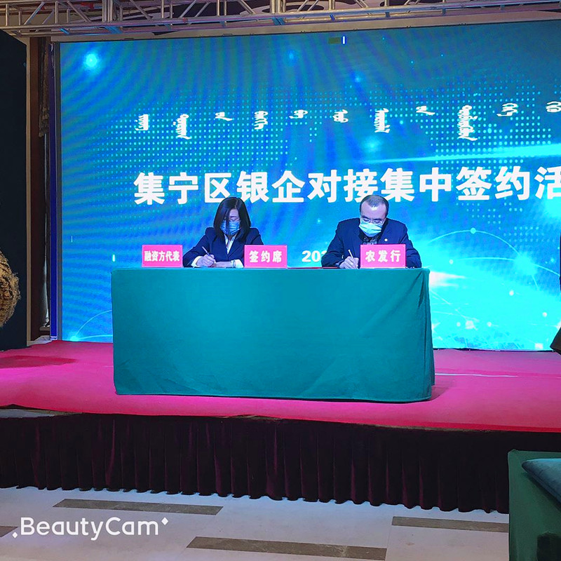 2020年3月9日上午,集宁区举行银企对接集中签约活动。由金融办牵头,组织各大银行、农资公司及种植大户进行对接,针对当前疫情期间为农资行业企业及种植大户和金融机构建立银企对接平台,旨在缓解集宁区农资经销商和种植企业、大户资金需求压力,为集宁区农耕生产及经济社会发展提供更加有力的资金保障,确保集宁区疫情防控期间春耕备耕生产工作有序开展。