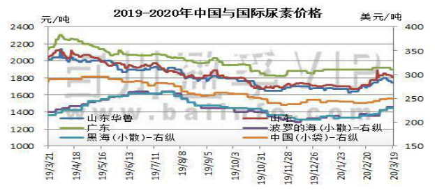 本周(2020.3.12-2020.3.19)钾肥市场整体挺价观望运行,东北市场春耕需求逐渐回暖,港口库存消化较多,部分可售现货较为紧俏,价格高位。其他地区进入平稳期,价格暂无明显波动,按需采购为主。大合同谈判开启,但目前暂无明确消息,仍待观望。
