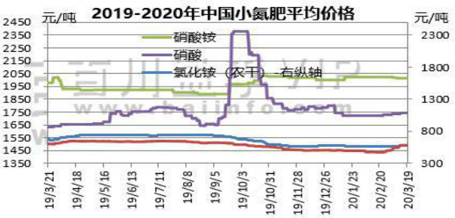 本周(2020.3.13-2020.3.19)一铵高端价格回落,一方面国内一铵开工基本恢复至年前水平,供应量增多,但新单需求一般,因此部分中小企业降价吸单。另一方面,国内多数一铵企业待发量至四月中下旬,待发充足的情况下,一铵大企业无意大量接低价新单,市场及下游对现货采购价格有僵持议价想法,观望氛围变浓,因此成交放缓,因此本周高端价格回落,低端盘整为主。