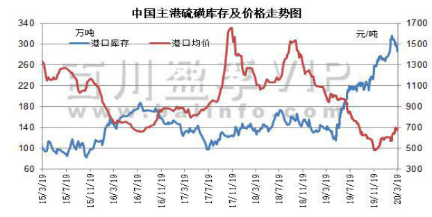 本周(2020.3.13-2020.3.19)国产硫磺价格小幅调涨,市场延续上行走势。湖北地区交通限制逐渐宽松,下游企业提高生产负荷,华中地区炼厂出货顺畅固硫报价上调20元/吨。南方地区内硫磺资源较为紧张,多数炼厂供应合约货为主,加上西南工厂开工负荷持续高位广西石化仍在检修,区域内短期需大于供,华南地区炼厂硫磺价格均有上调。