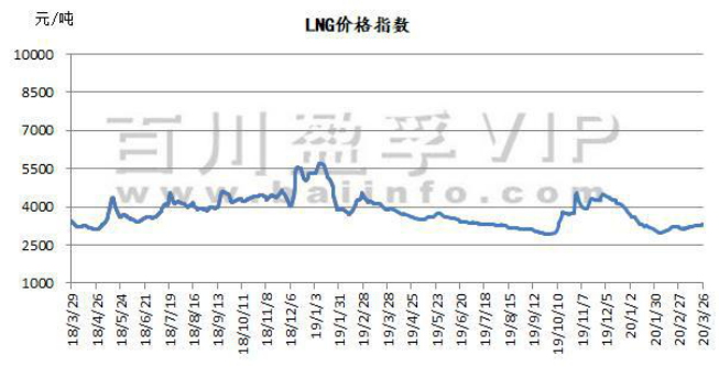 价格指数从3月19日的3250元/吨,上调至当前3297元/吨,上调47元/吨,本周天然气市场价格涨跌互现,整体价格小幅上行。