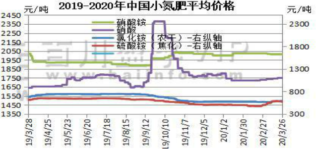 本周(2020.3.20-2020.3.26)部分一铵企业出厂报价继续回落,多数大厂一单一议,商谈空间加大,成交重心下移。春耕备肥接近尾声下游企业备货积极性转淡,但市场供应量维持平稳,多供弱需局面逐渐形成,加之成本面对一铵支撑减弱,企业销售压力颇大,对于后市心态悲观因此短期价格弱势运行。