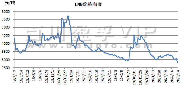 价格指数从5月7日的3071元/吨,下跌至当前2791元/吨,下调280元/吨,本周天然气市场价格连续下跌,下跌幅度较大,整体呈现下降趋势,总体价格波动幅度在50-500元/吨之间,目前价格有一定上下调动,调价幅度对下游接货已经造成一定的影响。