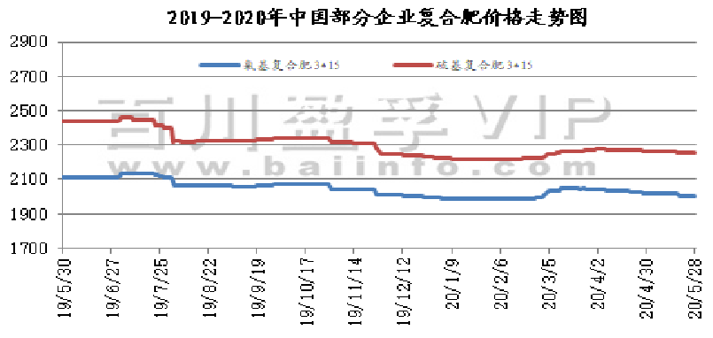 5月,复合肥市场整体处于下滑趋势,主要是受上游原料弱势及下游需求转淡影响,厂家主发前期订单,新单跟进一般。月初,受“五一”节后高速恢复收费影响,复合肥厂家纷纷有一波集中出货;整体交投面表现一般,企业虽多有出台优惠政策,但实际成交以商议为主。而上游原料面依旧利空,复合肥成本支撑不足;下游经销商多持观望,按需拿货,市场整体到货量约六七成。月中,东北市场基本结束,下游农需有所转淡,厂家新单零星成交;而东北地区厂家因需求弱势纷纷下调开工,部分产线进入淡季检修阶段,以避免过度累积库存。上游尿素局部地区有所探涨,但复合肥整体成本面依旧维持利空,下游接货意愿并不强烈,打款谨慎。月末,复合肥整体市场弱势整理,下游经销商适量补货,肥企多是灵活产销,市场到货量差不多在八成左右;部分地区走货尚可,但仅短暂维持;六月市场将进入用肥淡季时节,部分厂家已逐步开始制定检修计划,为秋季用肥市场做好准备。