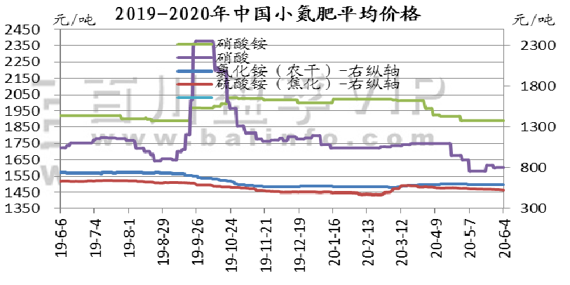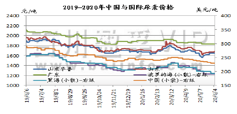 本周国内尿素市场价格继续保持坚挺态势,成交势头较好。截止目前,山东及两河出厂报价在1640-1680元/吨,成交1620-1650元/吨,厂家预收良好。东北及华东局部地区农需追肥备肥持续进行中,接单火爆,价格挺涨;山西工厂各发货站近日接到郑州局正式通知,自2020年6月5号18点以后,铁路大票目前运费优惠的30%,调整为优惠10%,铁路运费方面做了明确调整,导致山西各厂运输成本有所增加;新疆地区农需增加,下游接货积极,成交尚可,库存压力有所缓解。另外5月底至6月初,国内多家企业进入集中检修期,供应量明显下滑。