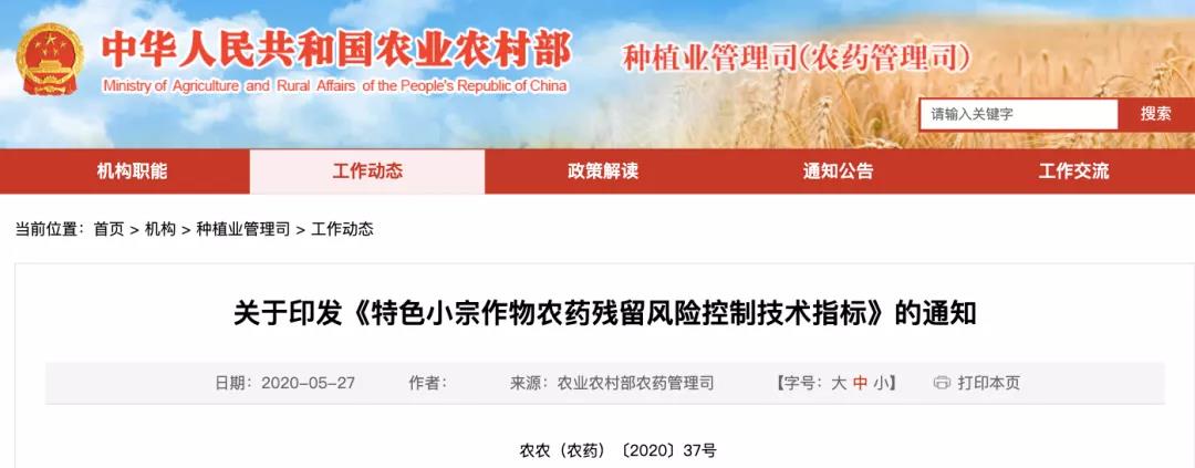 近日,农业农村部发布关于印发《特色小宗作物农药残留风险控制技术指标》的通知。通知中提出,为了规范特色小宗作物的临时用药措施、促进特色小宗作物用药登记,确保膳食风险可控,制定了《特色小宗作物农药残留风险控制技术指标》。