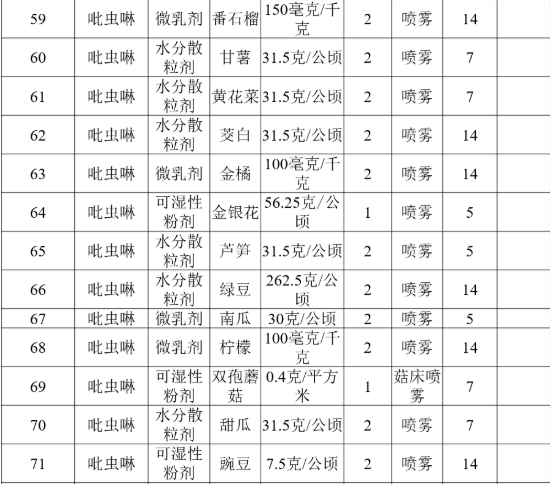 附件:特色小宗作物农药残留风险控制技术指标(表格部分内容)