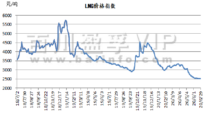 本月价格指数从5月27日的2626元/吨,下跌至当前2518元/吨,跌幅108元/吨,本月国内液化天然气价格小幅震荡下行。截止目前价格有一定幅度浮动,调价幅度已对下游造成一定影响。后受端午假期影响,部分LNG工厂因前期降价排库出货压力不大,LNG价格小幅探涨;库存压力较大厂家价格则有小幅下行。液厂以液位高低和出货环境为依据调整报价。