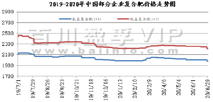 本月复合肥市场行情整体小幅下滑,主要是受上游原料弱势及下游需求转淡影响,厂家主发前期订单,新单跟进一般。进入6月,北方开始收割小麦,经销商主要以消化手中库存为主,采购十分有限;而南方大田作物已进入生长后期,市场整体农需较弱,交投面表现平平,补货订单跟进一般,消化库存为主,零星补货,经销商拿货十分谨慎,多是按需拿货。月中,复合肥市场横盘整理,夏季肥市场结束,秋季肥市场尚未开始,市场整体处于青黄不接的阶段;而下游农需偏弱,基层适量补货,经销商以观望为主,对秋季备肥十分谨慎。部分肥企已经逐渐召开秋季肥经销商会议,开始制定秋季肥优惠政策。月末,复合肥市场整体以下滑为主,大部分肥企还在筹备开展秋季肥经销商会议,尚未开始秋季备肥阶段;上游整体原料依旧处于弱势,磷肥稳中有涨,但钾肥市场跌跌不休,复合肥成本支撑依旧不足,厂家可操作性空间较小,挺价困难。6月整体平均开工率43.26%,环比下跌8.33%;