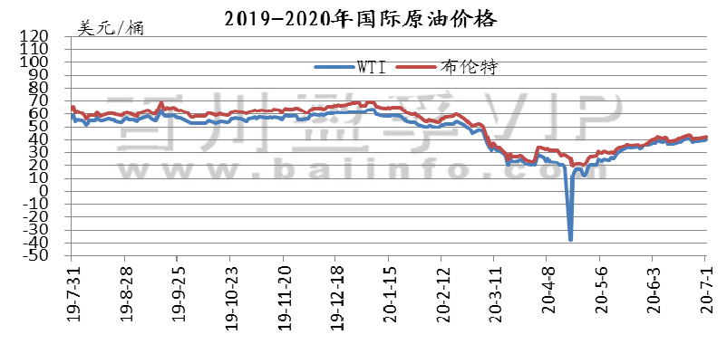 本周周内原油需求忧虑令油价承压,国际原油均价走低。国际原油均价小跌。其中WTI期货本周均价39.20美元/桶,较上周下跌0.72%,较上月上涨2.31%;本周布伦特期货均价41.39美元/桶,较上周下跌1.32%,较上月上涨1.38%。综合来看,预计下周国际原油价格仍将处于区间内震荡。