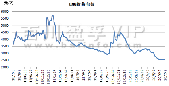 价格指数从6月28日的2521元/吨,小幅下跌至当前2515元/吨,下调6元/吨,本周液化天然气价格涨跌互现,市场整体趋稳,部分液厂根据自身库存窄幅调整报价,总体价格波动幅度在10-120元/吨之间,截止目前价格有一定上下调动,调价幅度对下游接货已经造成一定的影响。本周LNG市场整体价格趋于稳定,部分液厂以库存和出货环境为主导进行小幅调整报价。