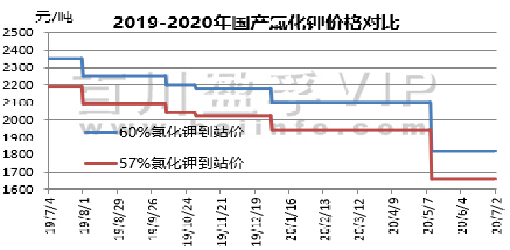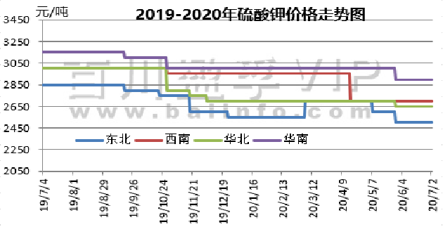 本周(2020.6.28-2020.7.2)硫酸钾盘整观望,市场成交有所回暖,部分货源较紧俏,市场价格维稳,并有小幅上行趋势。福建烟草招标开启,烟草招标将对市场需求有一定利好。曼海姆硫酸钾50%粉主流出厂价2400-2700元/吨左右,52%粉出厂价2500-2800元/吨左右,优惠幅度在50-100元/吨;东北地区50%粉主流出厂报价2500元/吨;华南地区价格相对较高,50%粉主流出厂报价2900元/吨。青海水盐体系硫酸钾主流到站报价2300-2350元/吨左右,成交有限,实际成交可谈。国投罗钾公司硫酸钾已超额完成上半年销量目标,现有库存预计仅可维持发运至7月下旬。福建烟草硫酸钾招标报价情况:1、国投罗钾(优等品)2550元/吨;2、锦泰(一等品)2492元/吨;3、青上(一等品)2495元/吨。计价标准是按单养分。价格稍高于目前市场价格,对硫酸钾市场价格有一定支撑。