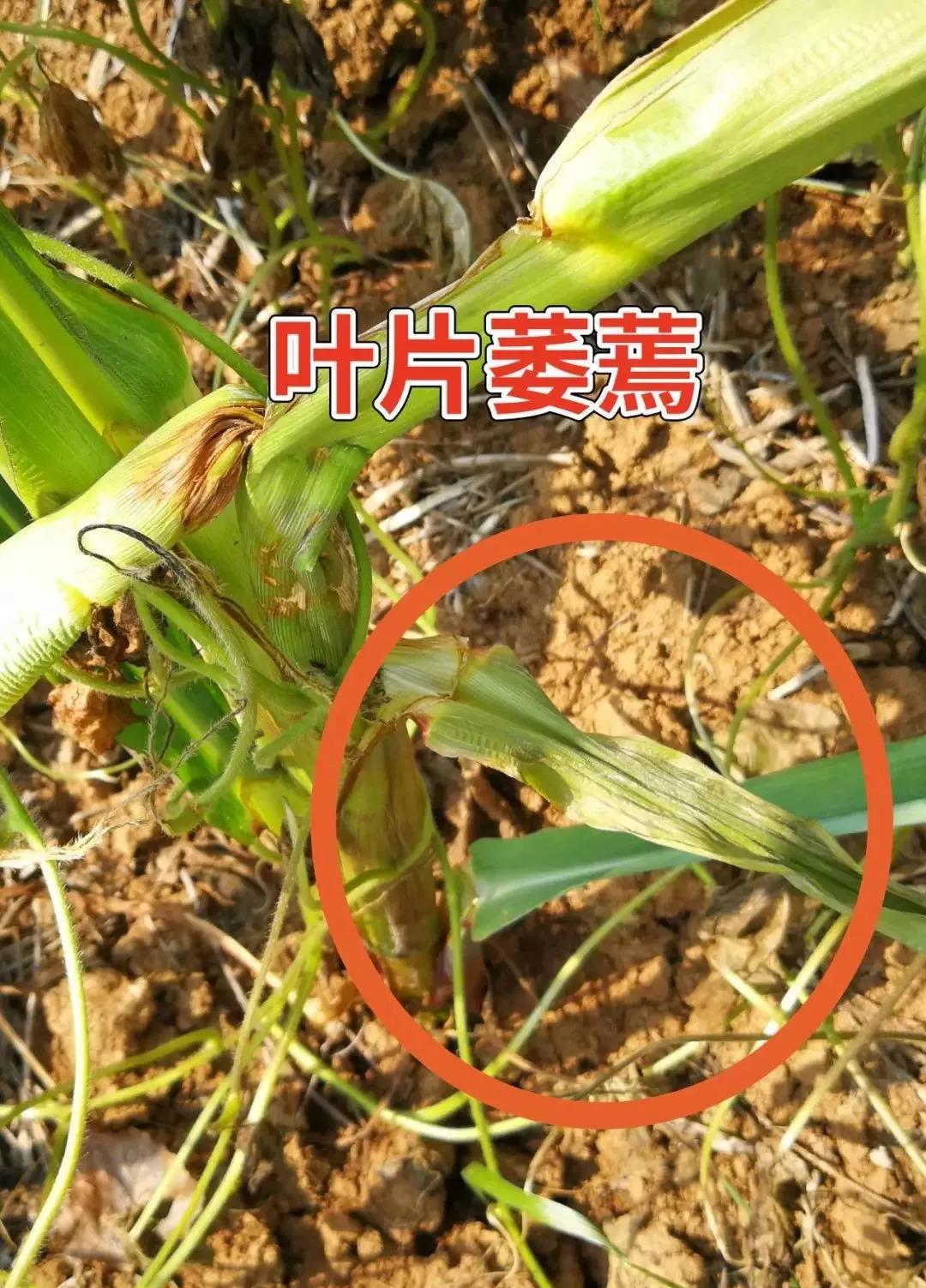 叶片呈现“青枯状”萎蔫,并且玉米会因为茎秆开裂而导致大量发病植株倒折和倒伏。