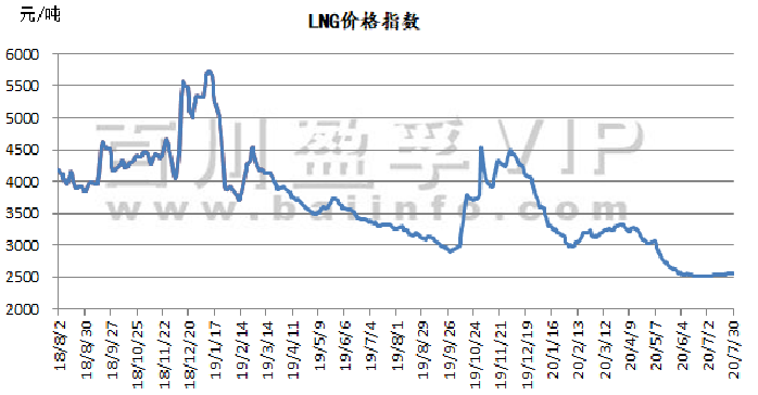 价格指数从7月23日的2550元/吨,小幅上调至当前2555元/吨,上调5元/吨,本周液化天然气市场小幅调整,整体运行相对平稳,价格涨跌互现,总体价格波动幅度在10-80元/吨之间。