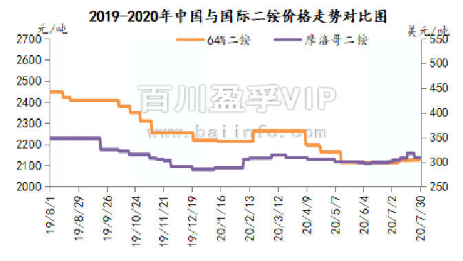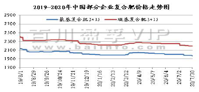本周(2020.7.24-2020.7.30)国内二铵市场价格持稳,各地区企业报价稳定,市场交投氛围良好。云贵地区64%主流成交价格至2150元/吨左右,湖北主流成交价格至2200-2250元/吨,河北地区64%第一到站价格稳定在2400-2450元/吨。目前国内各地区陆续调整价格,整体市场稳中有升。目前企业主出口集港为主,中国二铵出口价格稳定至315-318美元/吨FOB。