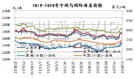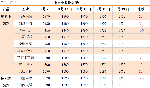 本周国内尿素市场行情涨跌互现。截止目前,山东及两河出厂报价在1720-1850元/吨,成交1670-1820元/吨。周初,由于近两周内国内尿素价格涨势过快,而内需清淡,难免造成下游贸易商抵触高价拿货,山东、安徽及河南等地市场价格小幅回落,成交“降温”;周中,印度RCF招标于8月10日截标,据悉出口价格明显高于预期,从而使国内尿素市价重回涨势,高端价格上探10-60元/吨,内蒙、山西及河北等地区个别厂家的货源仍陆续发往港口,货源紧张,限制接单,而其他地区内贸接少量订单,高价成交一般,稳价观望为主,当下国内需求过于清淡,国内尿素市场行情零星探涨,多趋稳整理。