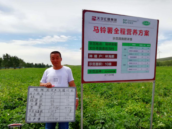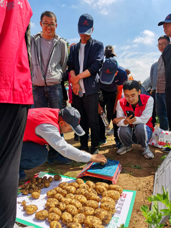 观摩会上对当地种植大户林海鹏所种植的两个品种马铃薯进行了现场的挖掘和测产,最终在扣除百分之五的损耗情况下,测定v7品种亩产量3.4吨,226品种亩产量高达3.8吨,得到了种植户的肯定。种植大户林海鹏高兴的说:“天宇汇景集团的格瑞龙化肥,综合来说性价比高、种植产量高,来年我的地全部都要用格瑞龙化肥!”