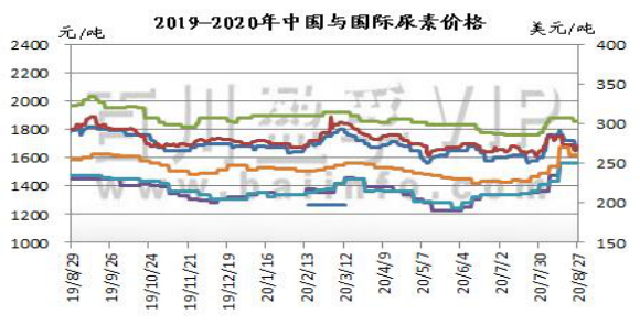 国际方面:8月18日,印度MMTC发布新一轮尿素招标,8月26日结标,船期至10月5日。8月26日印度MMTC尿素进口标购截标,东海岸最低价格为Koch提供的283.52美元/吨CFR,折合中国FOB270美元/吨。西海岸最低价格为Dreymoor提供的288.89美元/吨CFR,FOB价格为工厂GPIC提供的280美元/吨FOB的价格。