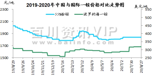 本周(2020.8.20-2020.8.27)硫酸钾市场挺价企稳,曼海姆厂家开工维持高位,市场基本没有库存压力,部分货源现货有限,下游需求暂无明显利好回暖。国际市场行情企稳,价格维稳运行。曼海姆硫酸钾50%粉主流出厂价2400-2700元/吨左右,52%粉出厂价2500-2800元/吨左右,优惠幅度在50-100元/吨。东北地区50%粉主流出厂报价2600元/吨;华南地区价格相对较高,50%粉主流出厂报价2900元/吨。青海水盐体系硫酸钾主流到站报价2300-2350元/吨左右,成交有限,实际成交可谈。新疆国投罗钾公司罗中和哈密硫酸钾仓库库存已售罄,预计10月上旬才能正常向市场恢复供货。