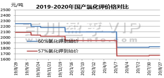本周(2020.8.20-2020.8.27)氯化钾市场观望气氛持续,目前大型贸易商仍处于停售阶段,报价暂未出台,部分货源偏紧,实际成交单议为主,后期价格或仍有上行可能。