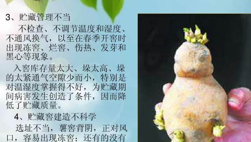 马铃薯收获后仍然是一个鲜活的有机体,它既是贮藏器官,又是繁殖器官,仍存在旺盛的生理生化活动(包括呼吸、蒸腾、休眠等),贮藏是一个降低或延缓其生理活动的过程。