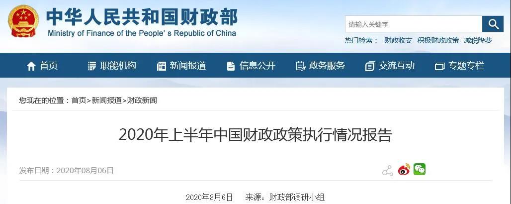 财政部8月6日发布2020年上半年中国财政政策执行情况报告。报告包括综述及十一个部分,其中,第九部分,全面梳理了财政支持农业农村的有关情况。