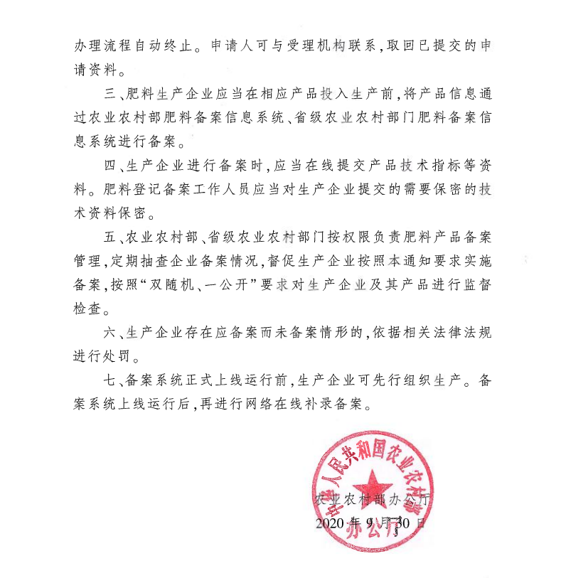 为贯彻落实《国务院关于取消和下放一批行政许可事项的决定》(国发〔2020〕13号)要求,加强肥料管理,促进肥料行业健康有序发展,我部决定对部分肥料产品实行实施备案管理制度,现将有关事项通知如下。