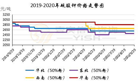本月硫酸钾市场维持弱势,成交有所回落,下游开工较低,采购积极性不佳,市场小单补货为主。市场供应量有限,在原料成本支撑下,价格企稳运行为主。云南烟草招标公告发布,全省烟用硫酸钾采购数量179585吨,共划分为六个标段。水溶性硫酸钾采购数量约3898.625吨,最高限价为2900元/吨(含税)。云南烟草招标将对硫酸钾市场需求起到一定利好支撑。曼海姆硫酸钾50%粉主流出厂价2400-2600元/吨左右,52%粉出厂价2500-2700元/吨左右,优惠幅度在50-100元/吨。东北地区50%粉主流出厂报价2550元/吨;华南地区价格相对较高,50%粉主流出厂报价2900元/吨。青海水盐体系硫酸钾主流到站报价2300-2350元/吨左右,成交有限,实际成交可谈。新疆国投罗钾公司硫酸钾合同签订量已完成本年度销售任务,目前已预售2021年产品,但控制接单数量。