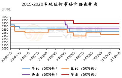 市场价格方面:硫酸钾市场行情维稳,价格暂无波动,曼海姆硫酸钾50%粉主流出厂价2400-2600元/吨左右,52%粉出厂价2500-2700元/吨左右,优惠幅度在50-100元/吨。东北地区50%粉主流出厂报价2550元/吨;华南地区价格相对较高,50%粉主流出厂报价2900元/吨。青海水盐体系硫酸钾主流到站报价2300-2350元/吨左右,成交有限,实际成交可谈。国投罗钾公司硫酸钾装正常生产,年内不接新单,供应量有所减少。