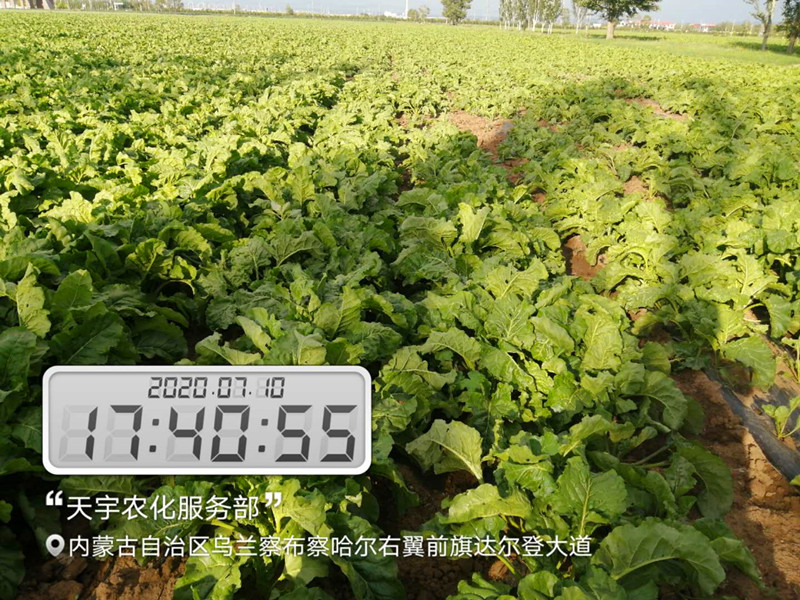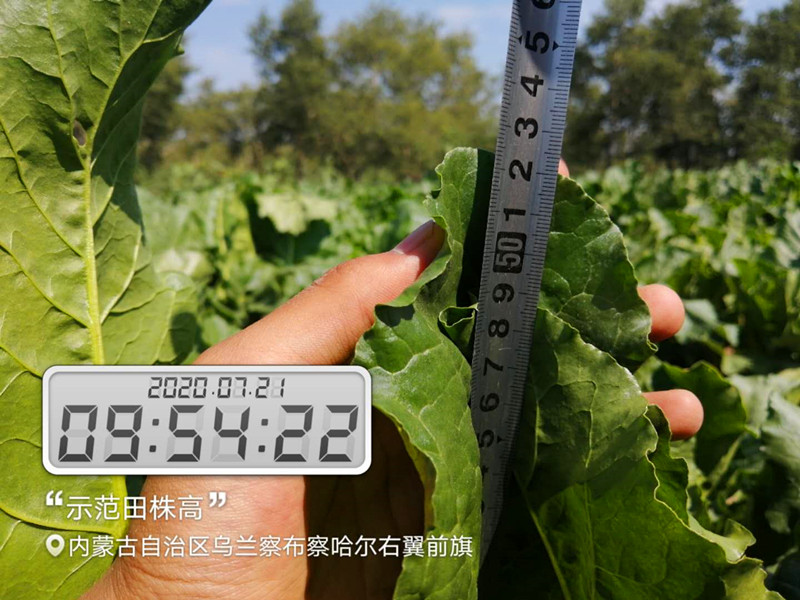 监测记录:对甜菜进行观察与测量,此时甜菜平均高度在1300px左右,在追施格瑞龙15-39-10水溶肥17天后,甜菜平均增长500px,高磷水溶肥促进甜菜根系生长,加快养分吸收,生长旺盛。
