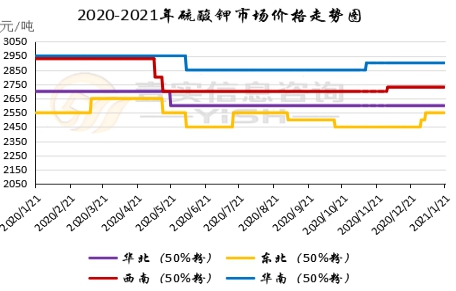国际市场方面:本周国际市场价格企稳,暂无明显波动。曼海姆硫酸钾50%粉主流出厂价2550-2650元/吨左右,52%粉出厂价2650-2750元/吨左右,优惠幅度在50-100元/吨。东北地区硫酸钾供应量较为紧俏,价格维持坚挺,50%粉主流出厂报价2600元/吨;华南地区价格相对较高,50%粉主流出厂报价2950元/吨。青海水盐体系硫酸钾供应较为紧俏,开工维持低位,主流到站报价2500元/吨左右,实际成交可谈。国投罗钾公司硫酸钾装置正常生产,控制接单,罗钾52%粉末硫酸钾现汇价格2700-2750元/吨左右。