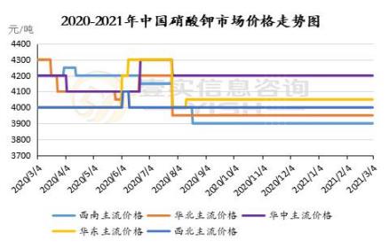 价格方面:主流企业报价暂稳,华东地区硝酸钾价格暂无变化,农业级主流参考价为 4050 元/ 吨,工业级粉状硝酸钾含税出厂报价 4150 元/吨,华东地区农业级产量较多,主供山东及周边蔬菜等 经济作物使用。华北地区,硝酸钾农业级参考报价为 3700-3850 元/吨,工业级参考报价 3800-3950 元/吨,市场价格稳定,企业报价维持淡稳。西南地区硝酸钾价格暂无变化,农业级主流参考价为 3800-4100 元/吨,工业级粉状硝酸钾含税出厂报价 4100 元/吨,实际成交单议为主。