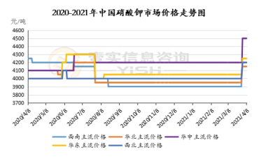 价格方面:硝酸钾市场价格全面调涨,其中,华东地区硝酸钾价格价格上调 200 元/吨,农业级主流参考价为 4300 元/吨,工业级粉状硝酸钾含税出厂报价 4400 元/吨,华东地区农业级产量较多,主供山东及周边蔬菜等经济作物使用。华北地区,硝酸钾农业级参考报价为 4000-4100 元/吨,工业级参考报价 4200-4300 元/吨,市场价格上调 200 元/吨。西南地区农业级硝酸钾主流参考价为4100-4200 元/吨,工业级粉状硝酸钾含税出厂报价 4300 元/吨,实际成交单议为主,市场价格整体大幅提升。