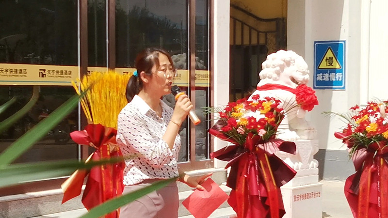 庆典当天,天宇汇景集团秘书长富永红、直属公司总经理李月枝、直属公司副总经理冯慧等莅临现场。天宇快捷酒店经理孟淑琴做开业致辞,向一直以来支持和帮助过我们的社会各界人士表达了衷心感谢。