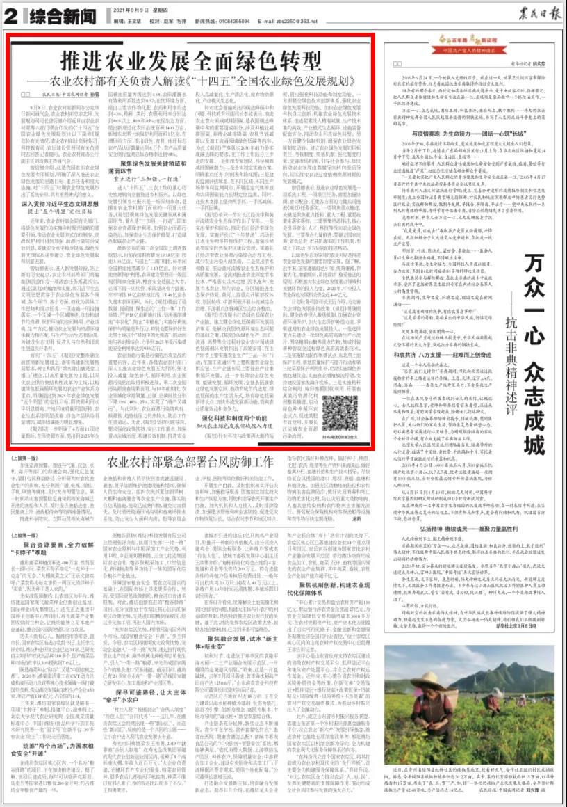 曾衍德介绍,这是我国首部农业绿色发展专项规划,明确了深入推进农业绿色发展的思路目标、重点任务和重大措施,对“十四五”时期农业绿色发展作出了系统安排,具有里程碑式的意义。