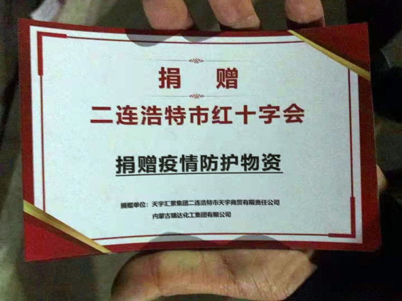 当前国内新冠肺炎疫情呈本土零星散发和局部聚集性疫情交织叠加态势,2021年10月13日二连浩特市突然出现一例确诊病例,二连地区立即进入了紧急状态,作为一家从二连浩特起家的企业,天宇公司时刻关注疫情情况,为缓解二连浩特市抗议一线疫情防控物资之急,助力做好二连浩特市疫情防控工作,我集团旗下二连浩特市天宇商贸有限责任公司携手内蒙古瑞达化工集团有限公司向二连浩特市红十字会捐赠疫情防护物资10吨次氯酸钠消毒液,于10月27日装车,10月30日送到二连浩特市红十字。