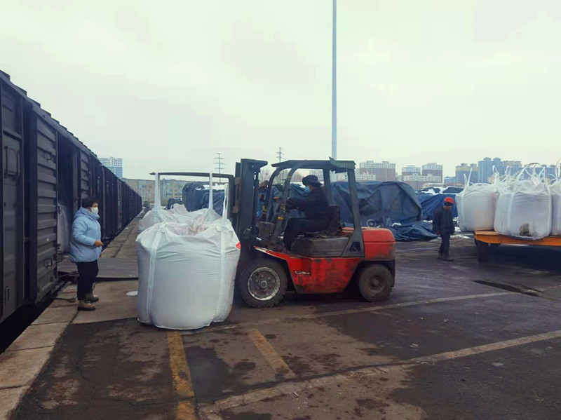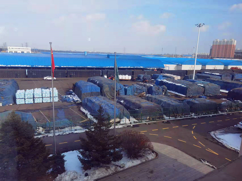 生产车间里一派繁忙景象,工人们正在紧张作业,开足马力生产、装卸化肥,抢抓时机,保证春耕生产。