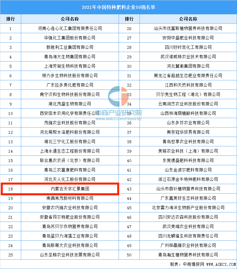 2021年,在武汉召开的“2021(第十四届)中国化肥百强评选发布暨中国化肥产业绿色发展高峰论坛”上,天宇汇景集团荣膺“2021中国化肥企业100强”第70名、“2021中国特种肥料企业50强”第18名、“2021中国生物有机肥企业50强”第46名三项荣誉,摘得发布会奖项的大满贯,再次获得行业肯定!