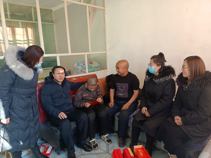 1月25日是我们中国传统节日小年,天宇汇景集团直属公司副总经理景利斌、工会主席张萌和党支部宣传委员王彩峰在东长青社区联合居委会副主任王丽娟陪同下,再次来到结对帮扶对象刘凯家,送上慰问品和慰问金,为他们送去温暖和春节前的祝福。