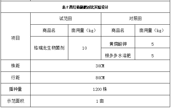 对照田使用肥料或菌剂:黄腐酸钾(5kg/亩)、根多多水溶肥(5kg/亩)